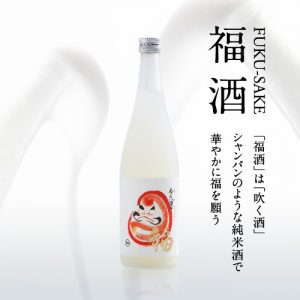 「福酒」は「吹く酒」。シャンパンのようなスパークリングの純米酒です。純米の旨みと、ビン内2次発酵による炭酸の刺激が相まった心地よい日本酒。ラベルのだるまには本物と同じ様に願いを込めて目を入れることがで…